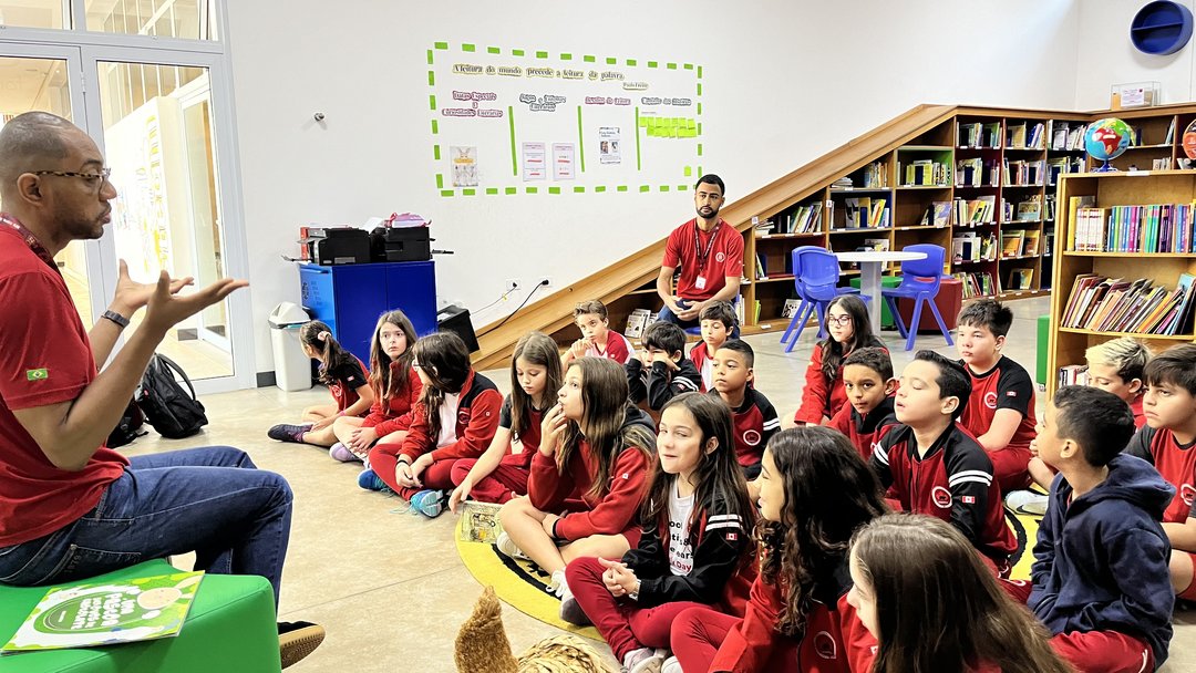 Nosso querido bibliotecário, Mr. Rodrigo, proporcionou um momento especial de contação de histórias para os alunos do Year 5!